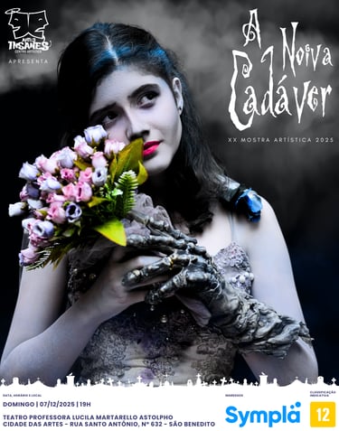 Nossa mostra de final de ano continua com mais atrações, entre elas a volta do espetáculo "A Noiva Cadáver" que foi sucesso do Artes Insanes em 2015 e 2016 e a estréia de nosso média-metragem "Nosso Segredo de Natal".