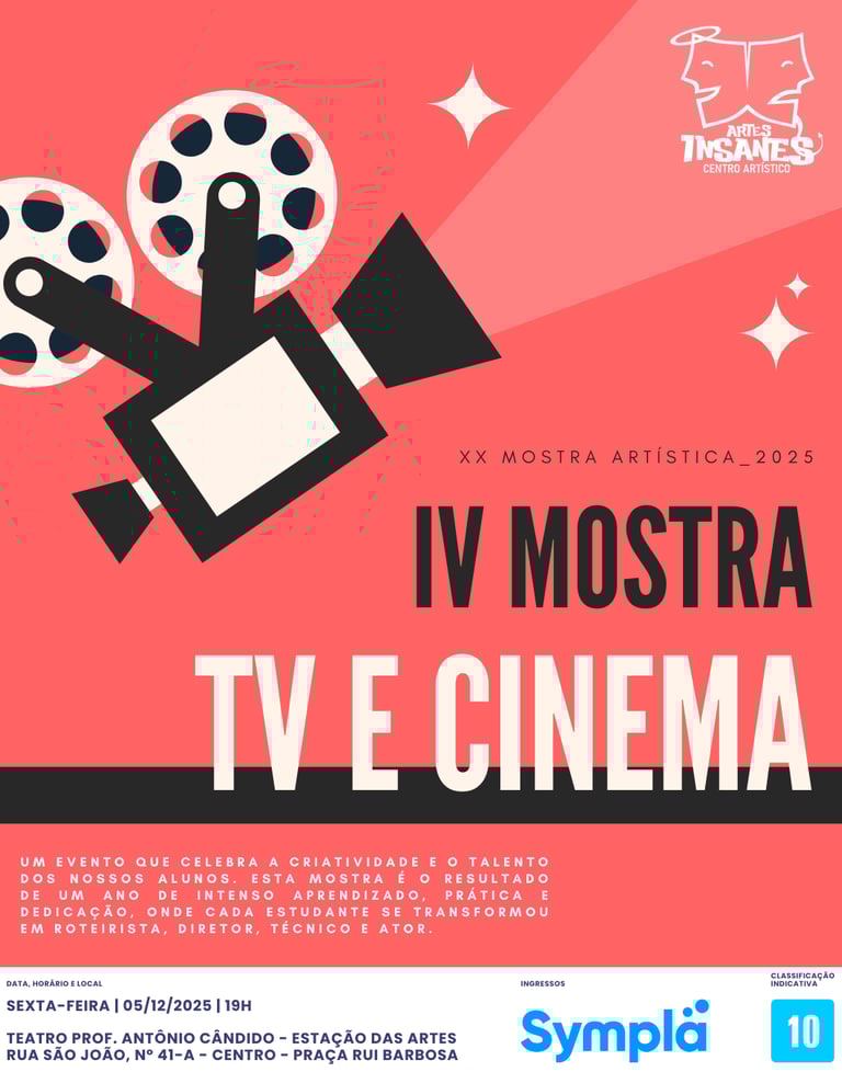 Em comemoração dos 14 anos da Companhia Artes Insanes, nossos alunos da turma do Curso de Teatro Profissionalizante apresentam o nosso 1º Festival de Monólogos, um espetáculo que reúne interpretações intensas e emocionantes de textos autorais e adaptados, com direção dos próprios artistas. Este evento é o resultado de um profundo estudo de dramaturgia e interpretação, proporcionando ao público uma experiência única e autêntica.